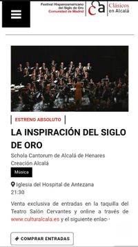 Venta exclusiva de entradas en la taquilla del Teatro Salón Cervantes y online a través de www.culturalcala.es